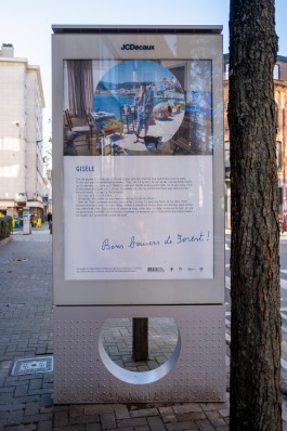Does she wants to go on a virtual trip? Yes! Where to? To the sea! No hesitation. We’re welcome inside, even if Gisèle, who knits baby booties because she will soon be a great-grandmother, does not live alone. Fleur and Moustique share her two-room flat. Naturally, she would take them with her to the sea.